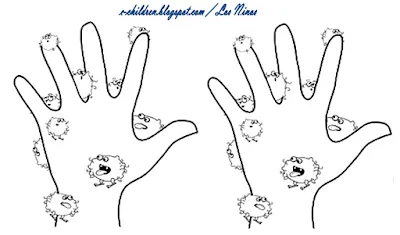 Αντί για mobile μπορούμε να το φτιάξουμε με τη μορφή κολλάζ, δηλαδή να κολλήσουμε τα μικρόβια στο φύλλο εργασίας που παρουσιάζει τα χεράκια, ή ακόμα και να ζωγραφίσουμε τα μικρόβια όπως θέλουμε και όπως μπορούμε.